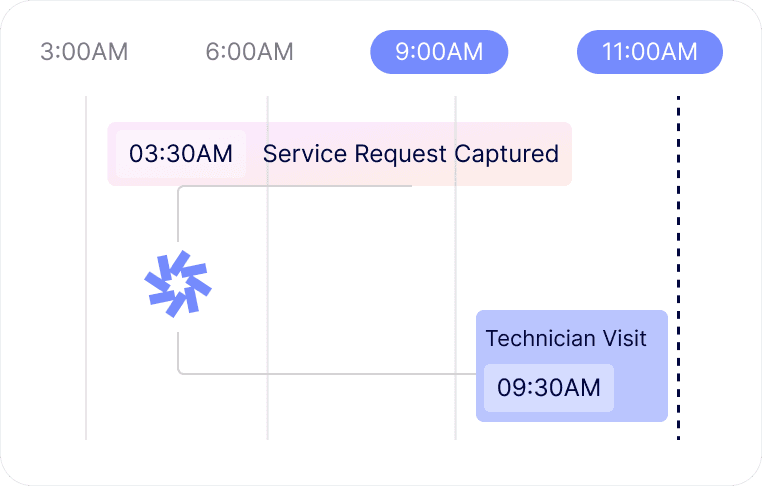 When a customer reaches out, the AI agent responds right away, gathers details, and initiates next steps.